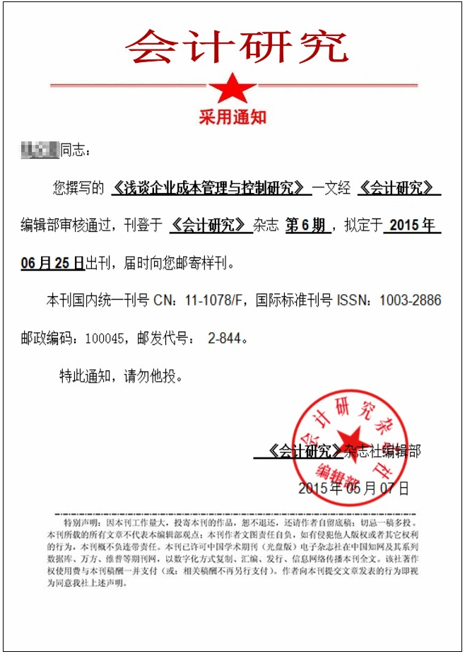 以下为受骗作者提交的“采用通知”: