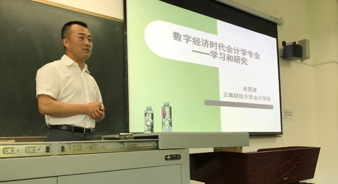 北方民族大学交流活动。5月22日上午,云南财经大学余怒涛教授做了《数字经济时代会计学专业——学习和研究》的专题讲座。他与北方民族大学商学院会计161和会计162班的同学探讨了数字经济时代会计学专业的学生如何进行专业学习和研究,余怒涛教授首先从习近平总书记所作的十九大报告中引出数字经济的概念,并为大家详细讲解了数字经济的涵义、特征及其技术,提出“互联网+”、“大数据”、“云计算”、虚拟现实、区块链、智能化等技术推动数字经济持续发展,也进一步推动会计专业的变革。进一步,余怒涛教授认为作为培养单位的高校,应当在数字经济时代来临之际应该迅速做出反应,及时调整人才培养方案,注重培养掌握多种技能的分析式管理人才;当代会计专业的大学生在学习的过程中也要主动适应变革,变被动学习为主动学习,在学习中掌握和利用好数字经济,尽快融入并跟上数字化时代,做财务转型时期合格的会计学专业毕业生。余怒涛教授还基于自己的研究与同学们探讨了未来会计学方向学生应如何把握自己的未来。